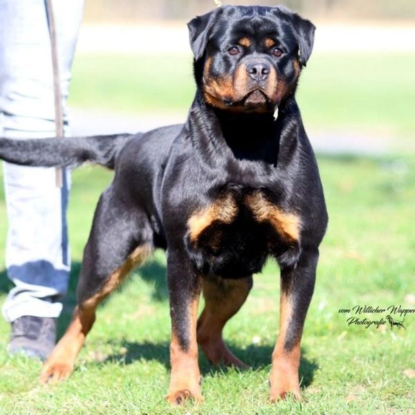 Yippie vom Cherniy Kumir is our newest addition. She is a German import with numerous health tests. Yippie is a big female that produces big Rottweiler puppies. Yippie comes to us from Anna wildelau-avilova and the Cherniy Kumir kennel. We are one of the 1st to carry her line in the USA and we look forward to continue working with Anna, the legend