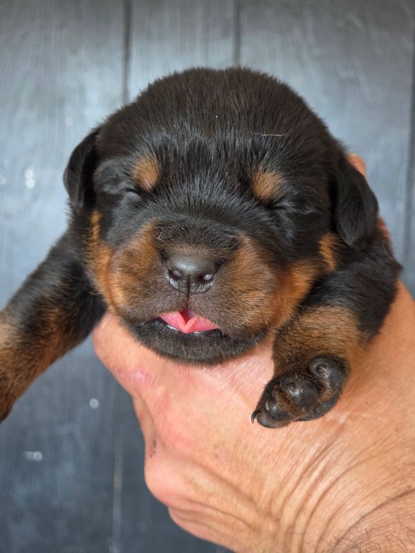 Oxana and Elton German Rottweiler puppies born 3/2 2026 and will go home early May 2026. 5th pick male; 3rd female available for deposit. Picking order is determined by the order of the deposit received. German Rottweiler Puppies sell for $3500.00 with a $1000.00 deposit to hold. We accept Venmo, Zelle, PayPal, Payments through Klarna, or any major credit/ debit card on this website through Go Daddy's secure payment platform. Our Rottweiler puppies sell out quickly. If you like what you see, and want to move forward with a deposit to secure your pick. Click the RESERVE PUPPY NOW button below.